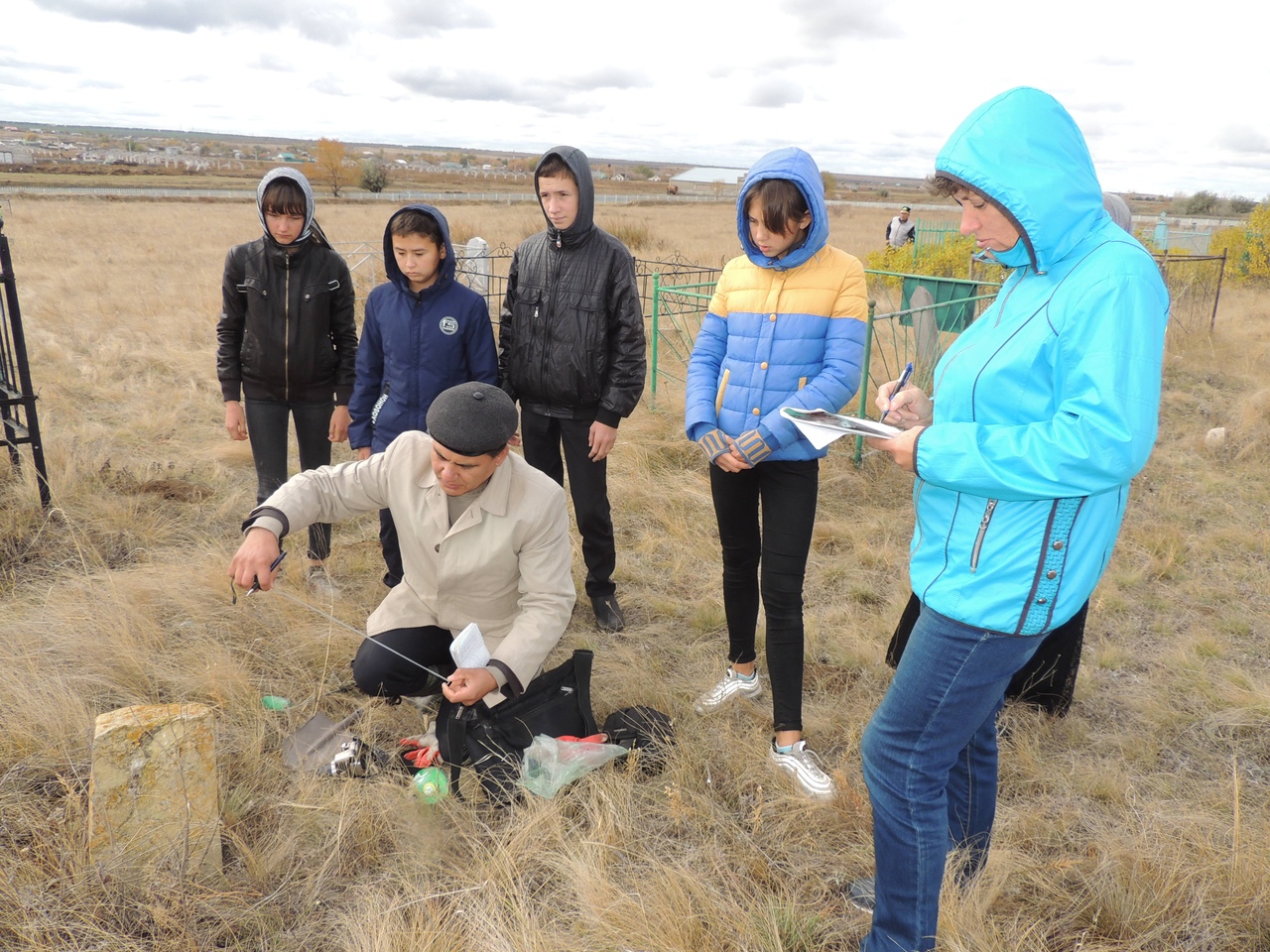 - Р.Ю. Аккубеков за работой. 13 октября 2018 г., мусульманское кладбище башкирской деревни Хасьяново Большечерниговского района Самарской области.